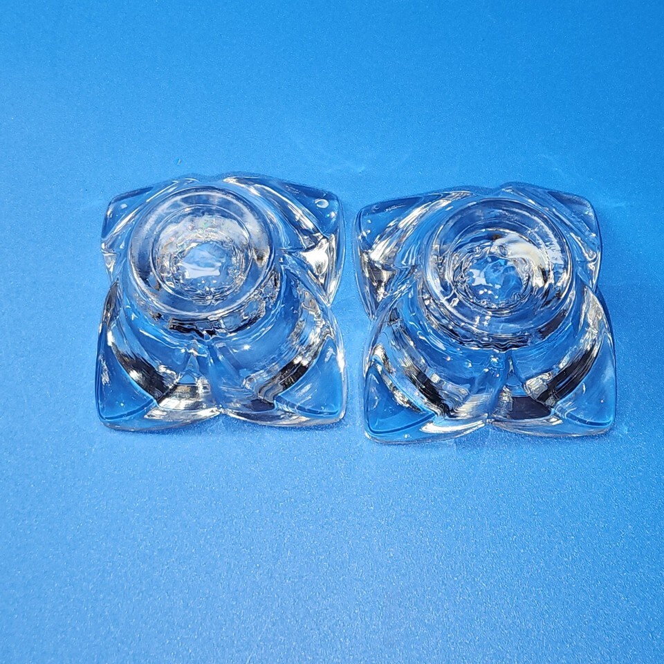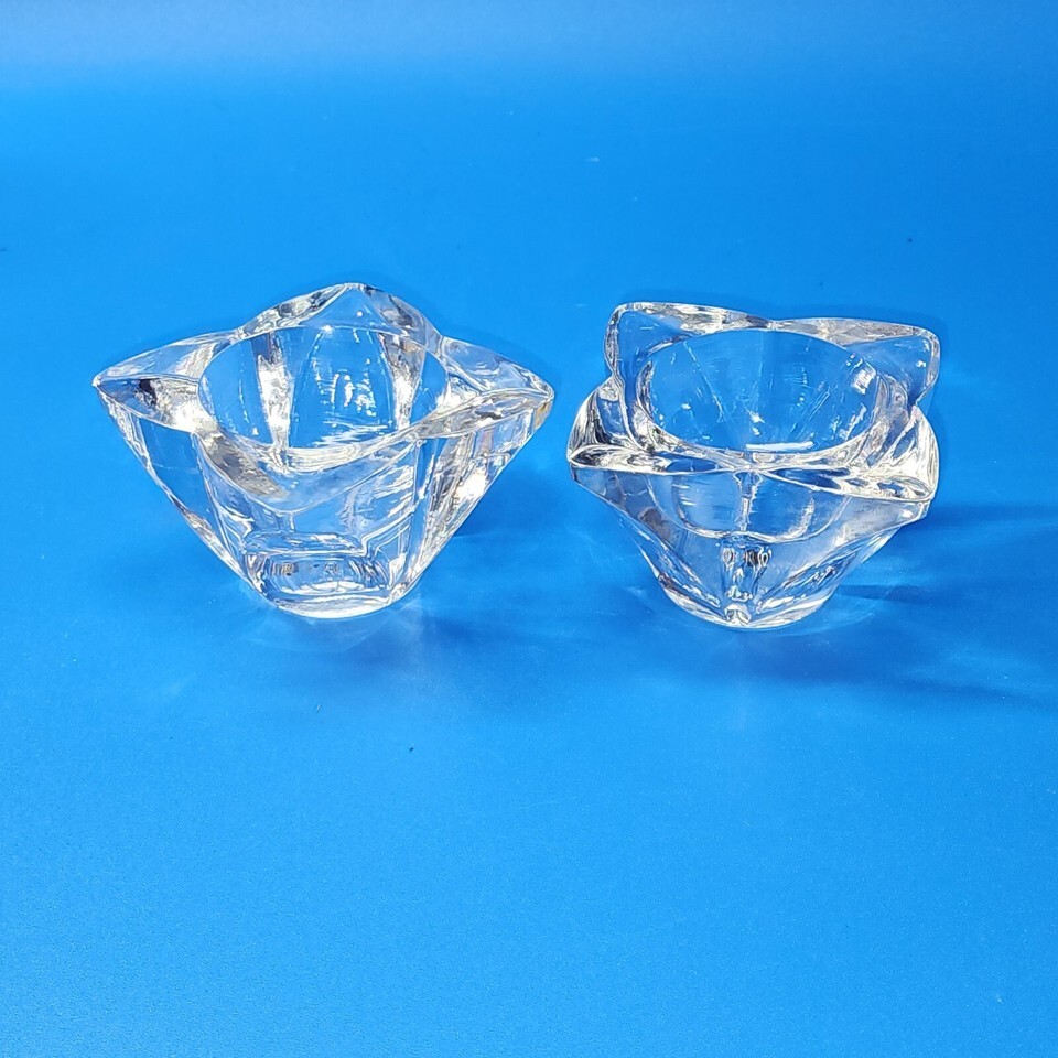 Mikasa Crystal 3" Flower Petal Tapered Candle Holder Candlestick - MINT Set Of 2