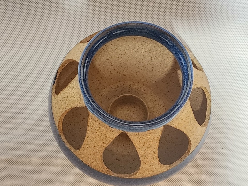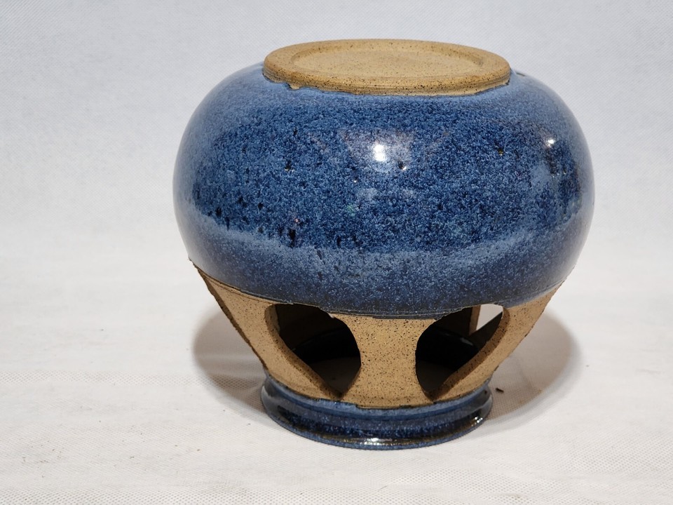 Indian Native American Pottery Clay Tealight Luminary In Blue Glaze - Signed F&R
