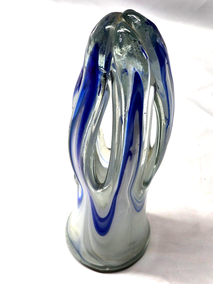 Vintage MURANO Style Open Sided Blue Swirl Pulled Art Glass Display Vase Sundry