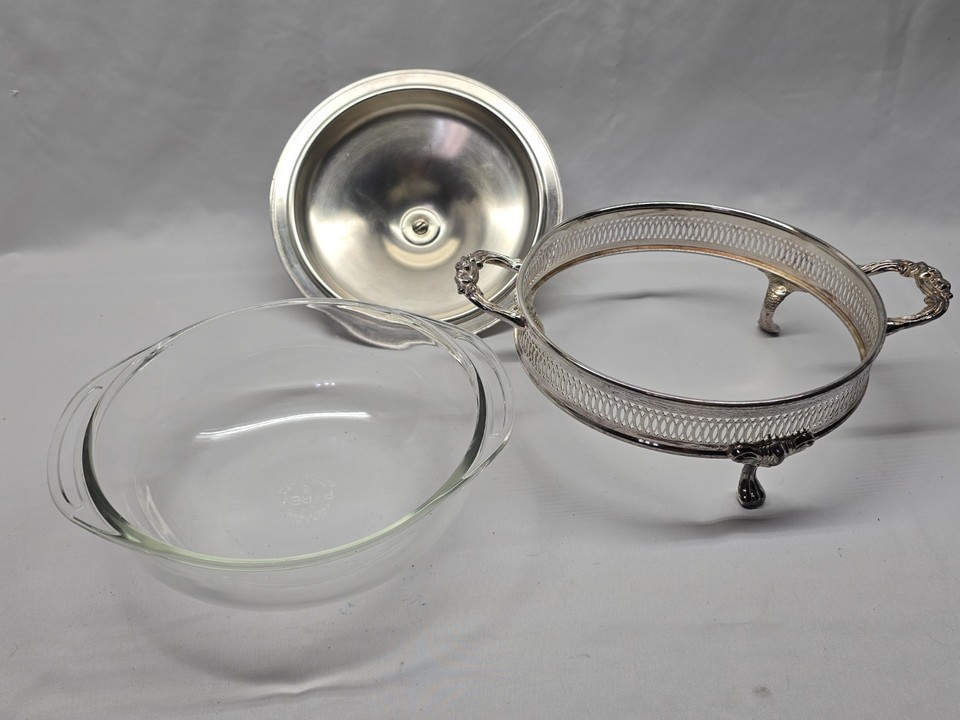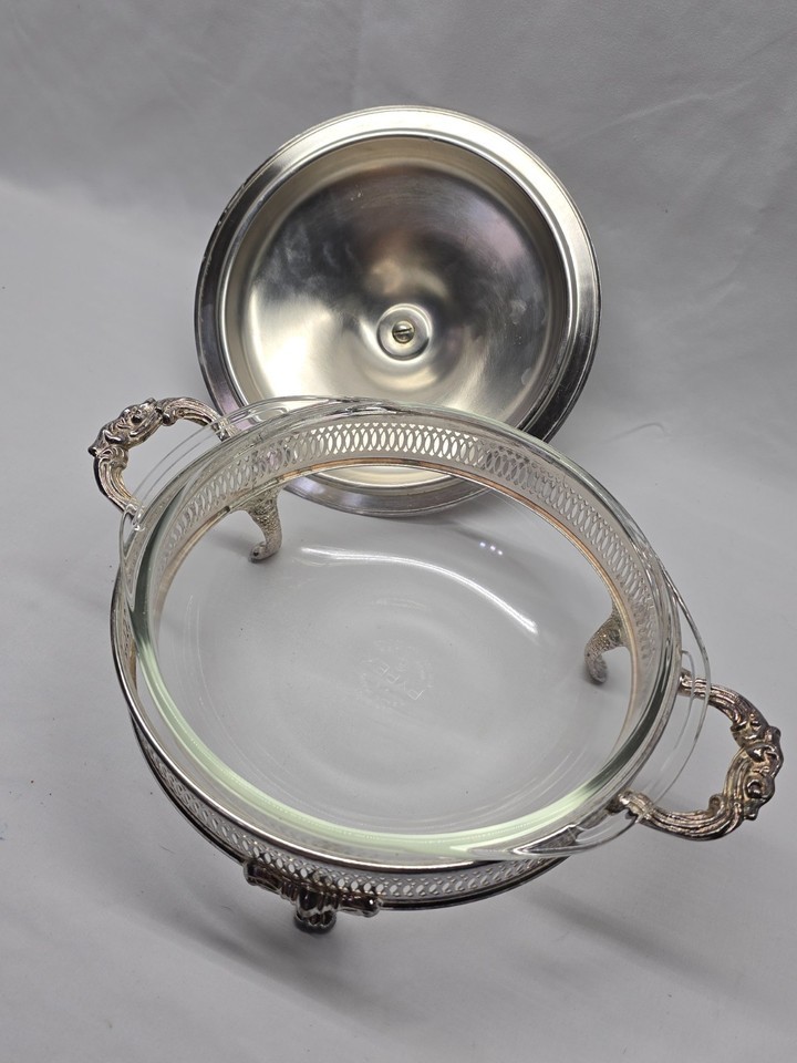 SHERIDAN Silver Plate Covered Footed Buffet Server With PYREX Casserole Dish 9"