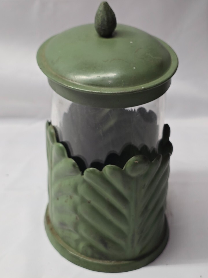 Vintage Glass & Metal Art Apothecary Jar Canister Candle Holder - Unmarked