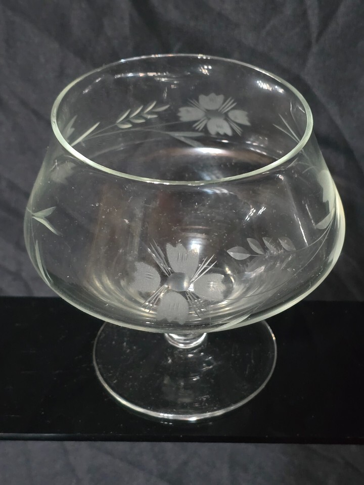Vintage ETCHED FLORAL 2-Piece Shrimp Cocktail Seafood Chiller Glass - Set Of 4