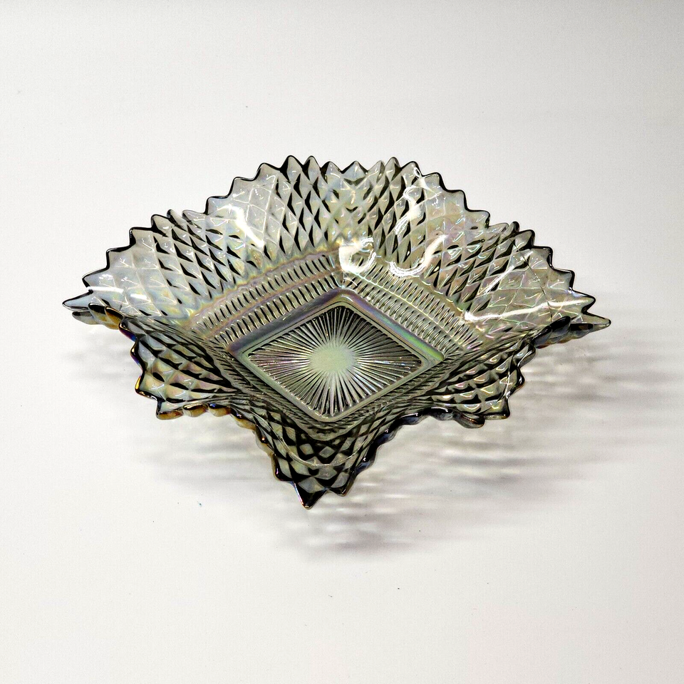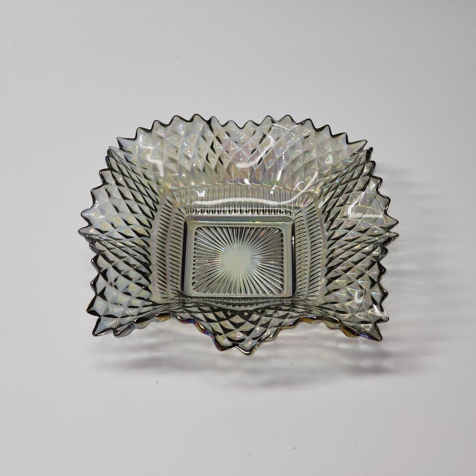 INDIANA GLASS 7" Candy Nut Dish DIAMOND POINT Smoke IRIDESCENT Carnival Glass
