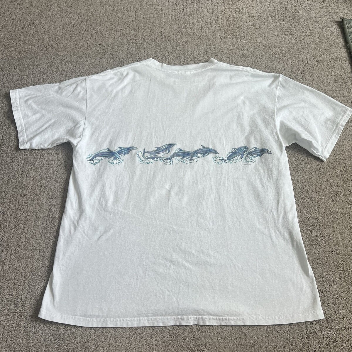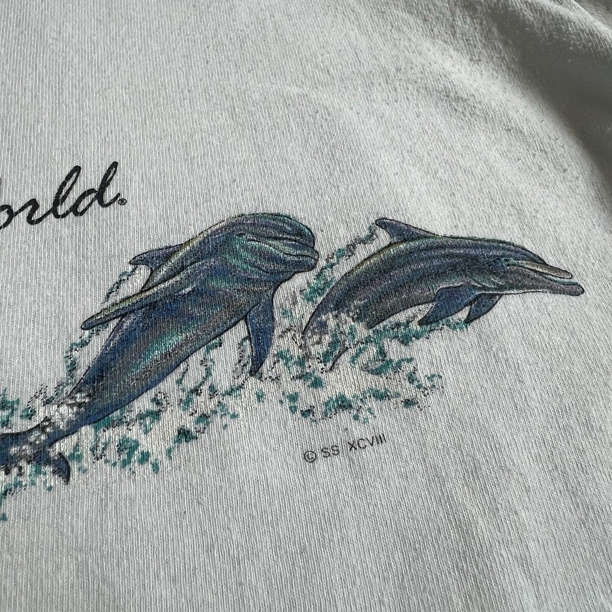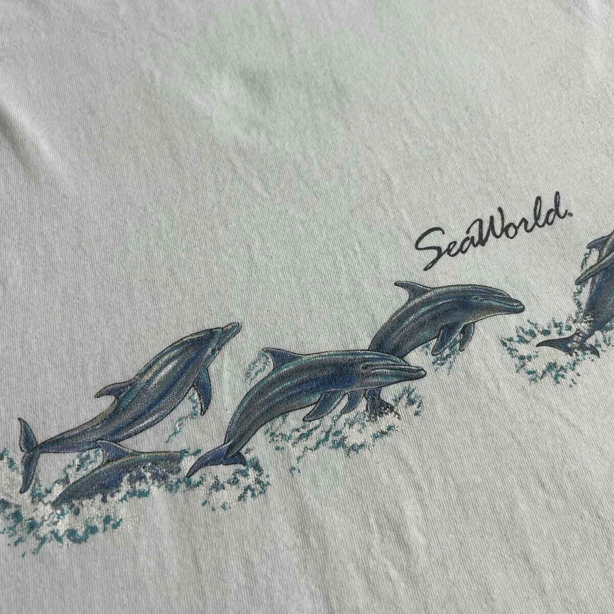 Vintage Seaworld Men?s Dolphin Stripe T Shirt Sz XL Double Sided White SanSegal