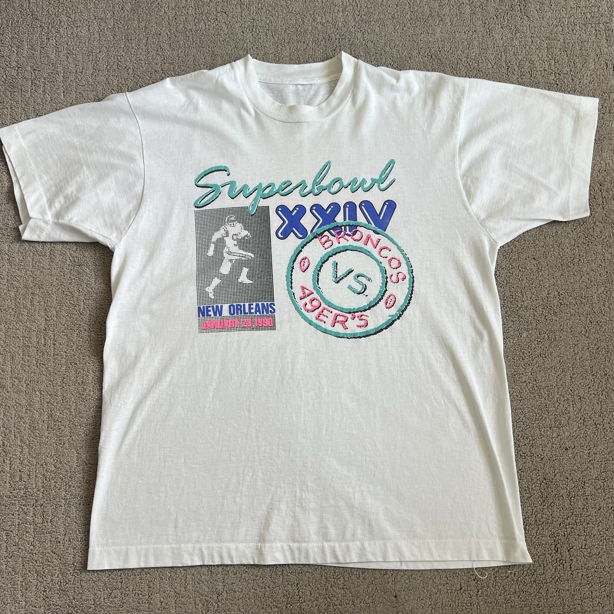 Vintage Super Bowl XXIV 49ers Vs Denver Broncos T Shirt Sz L Single Stitch USA