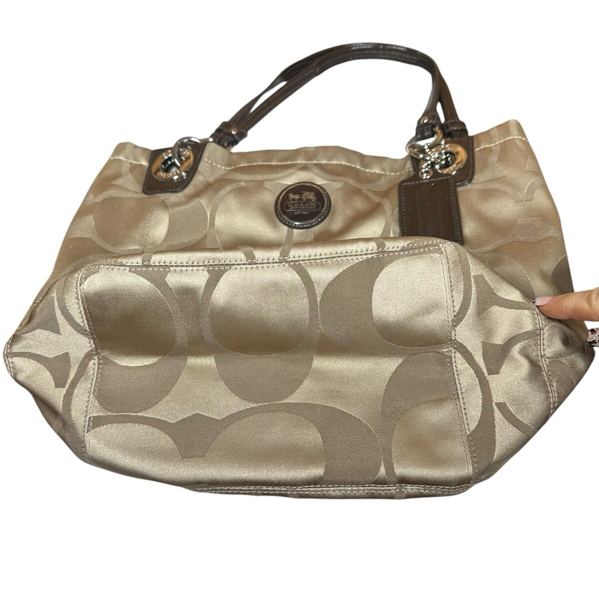 Coach Alex Tan Brown Sateen Signature Tote Shoulder Bag Purse 14449 w/ Hang Tag
