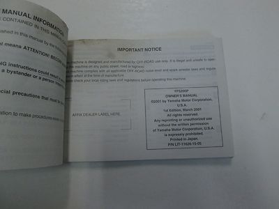 2002 YAMAHA BLASTER YFS200P MOTORCYCLE OWNERS MANUAL WATER DAMAGED STAINED