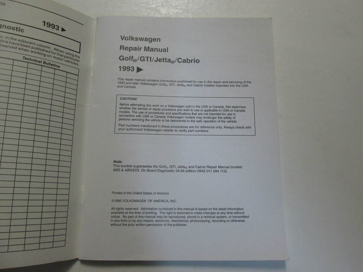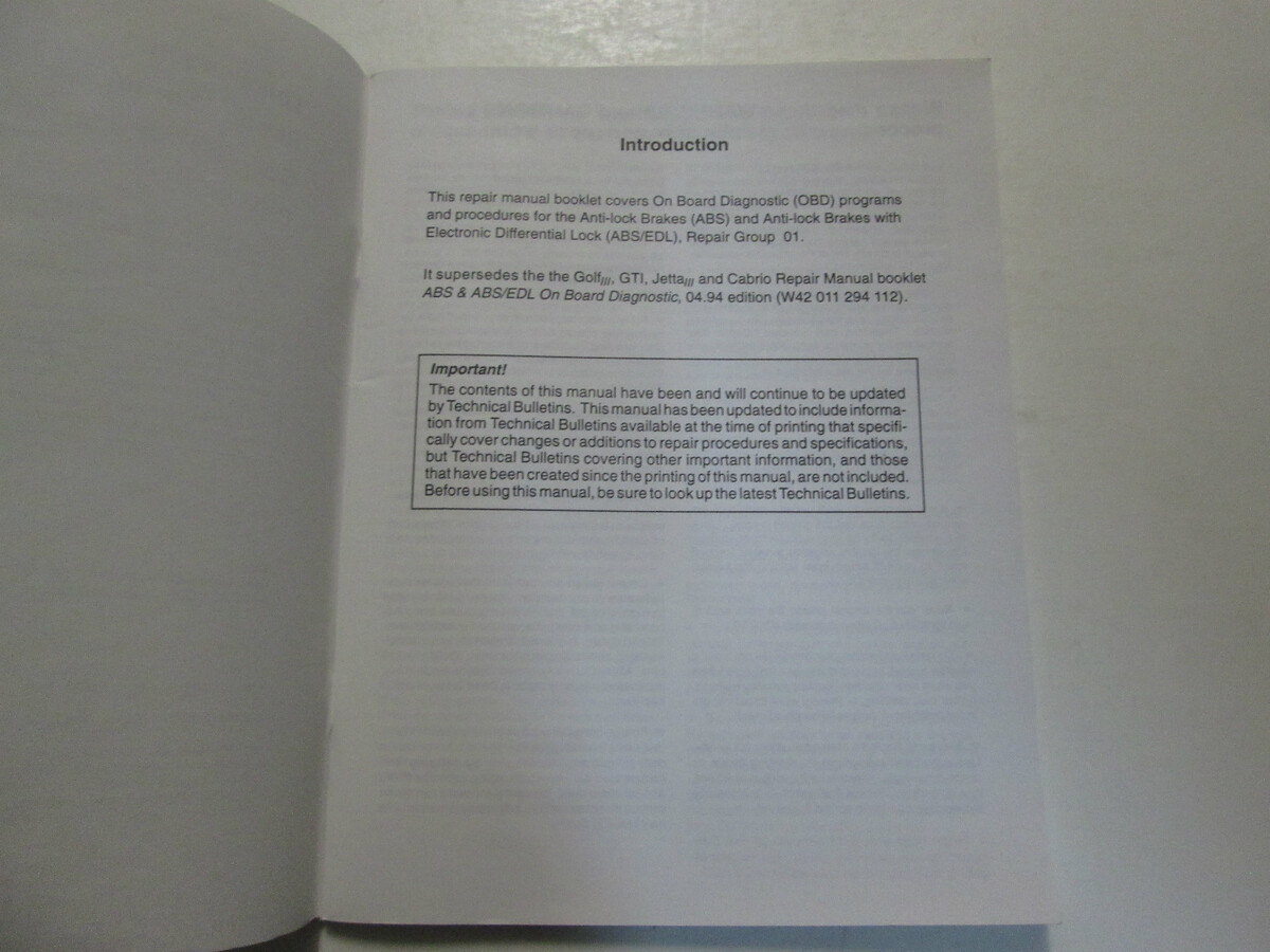 1993 1997 VW Golf Gti Jetta ABS / Edl Su Tavola Diagnosi Riparazione Manual