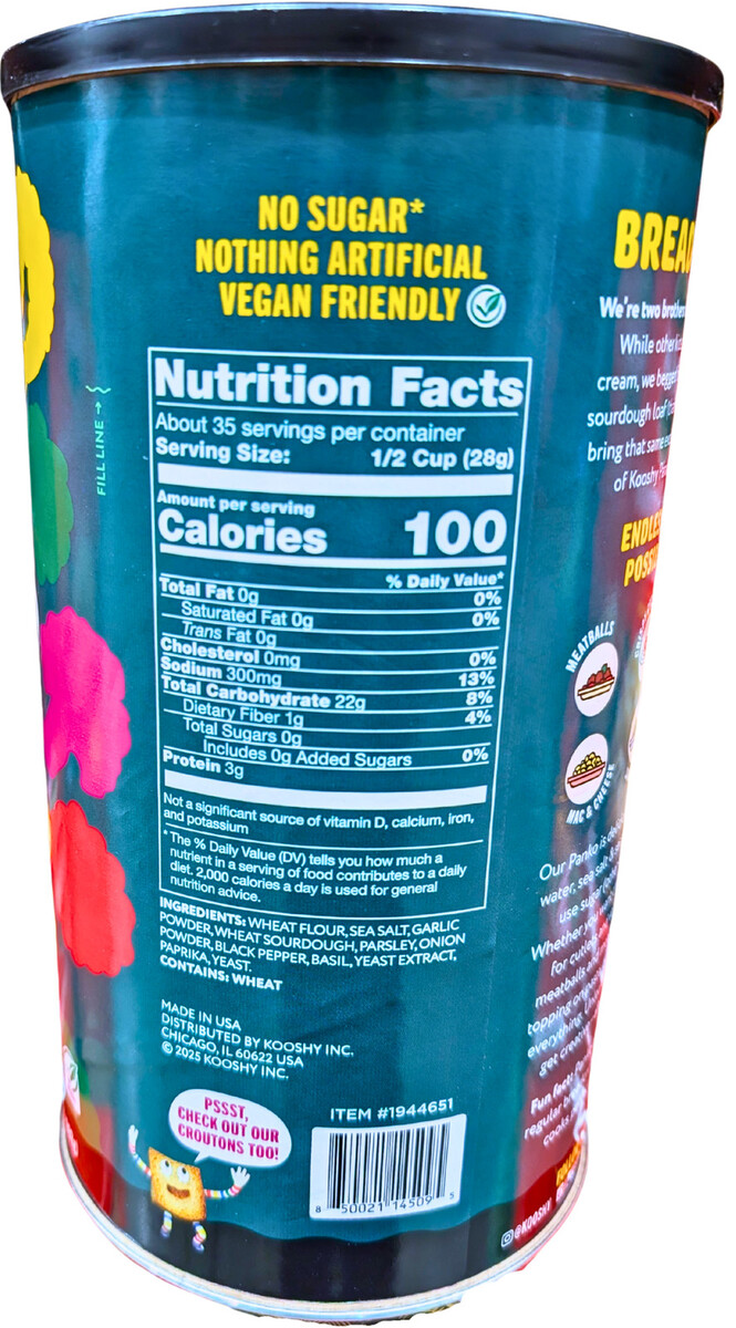 Kooshy Sourdough Panko Breadcrumbs Italiano 35 Oz EXP 11/2026