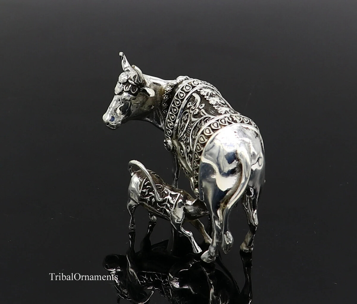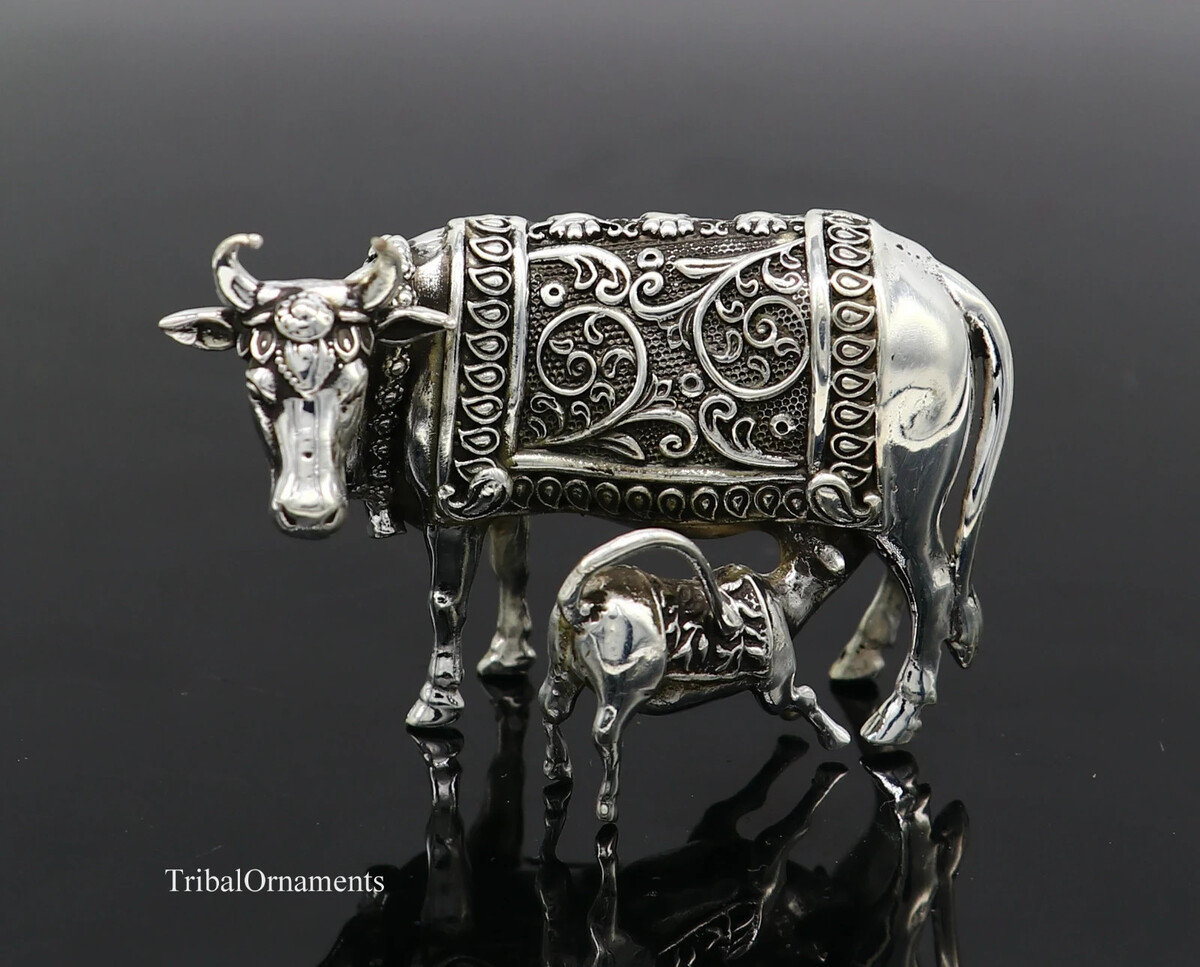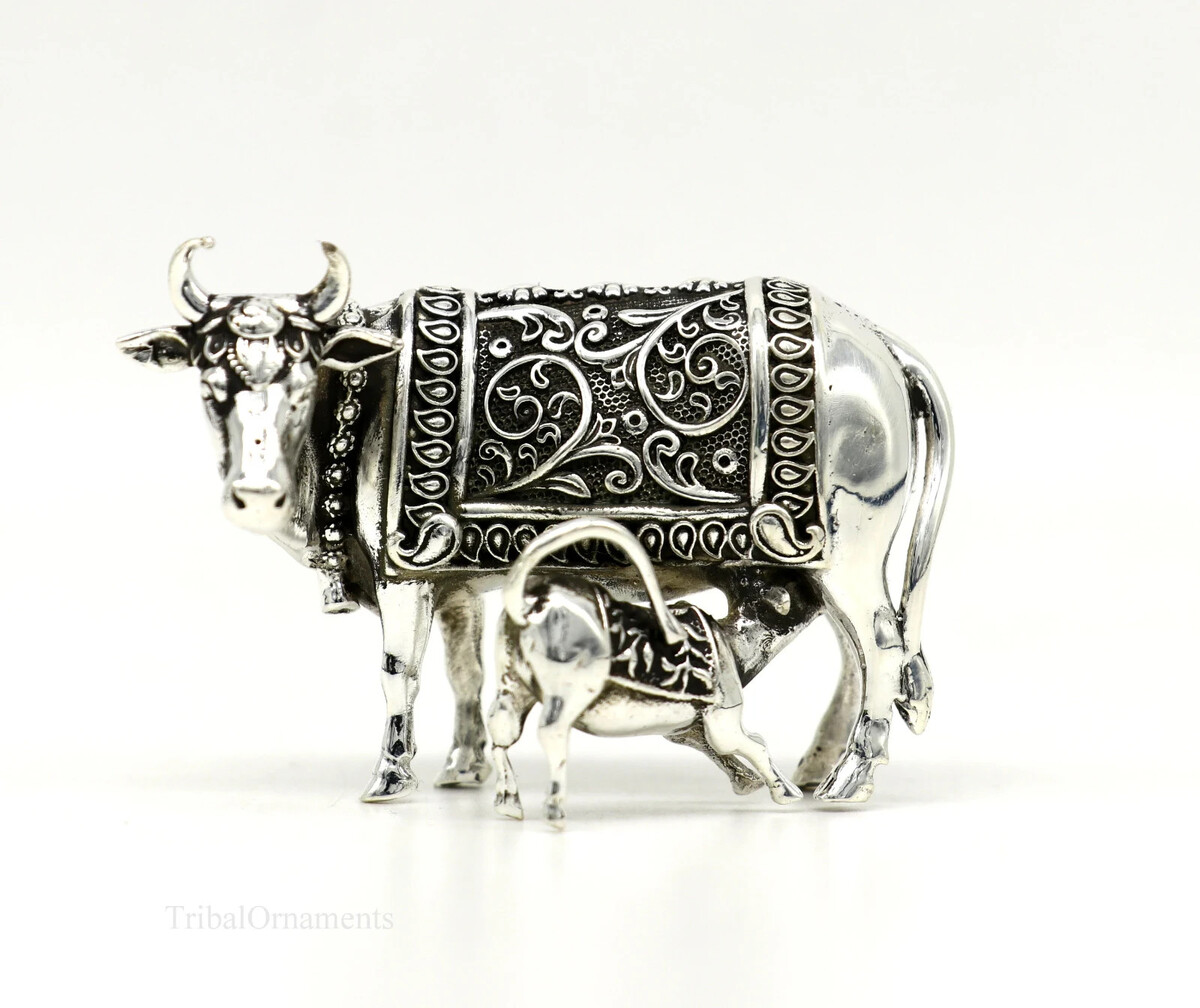 925sterling silver Nakshi work Kamdhenu statue figurine puja article art120