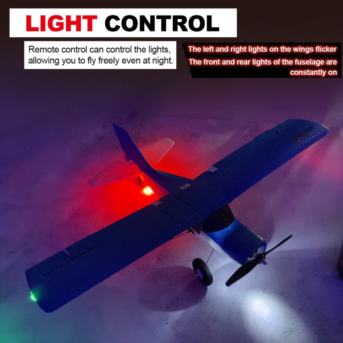 Flashing LED lights on the wingtips and solid LED lights mounted at the front and rear of the fuselage provide helpful in-flight navigation.