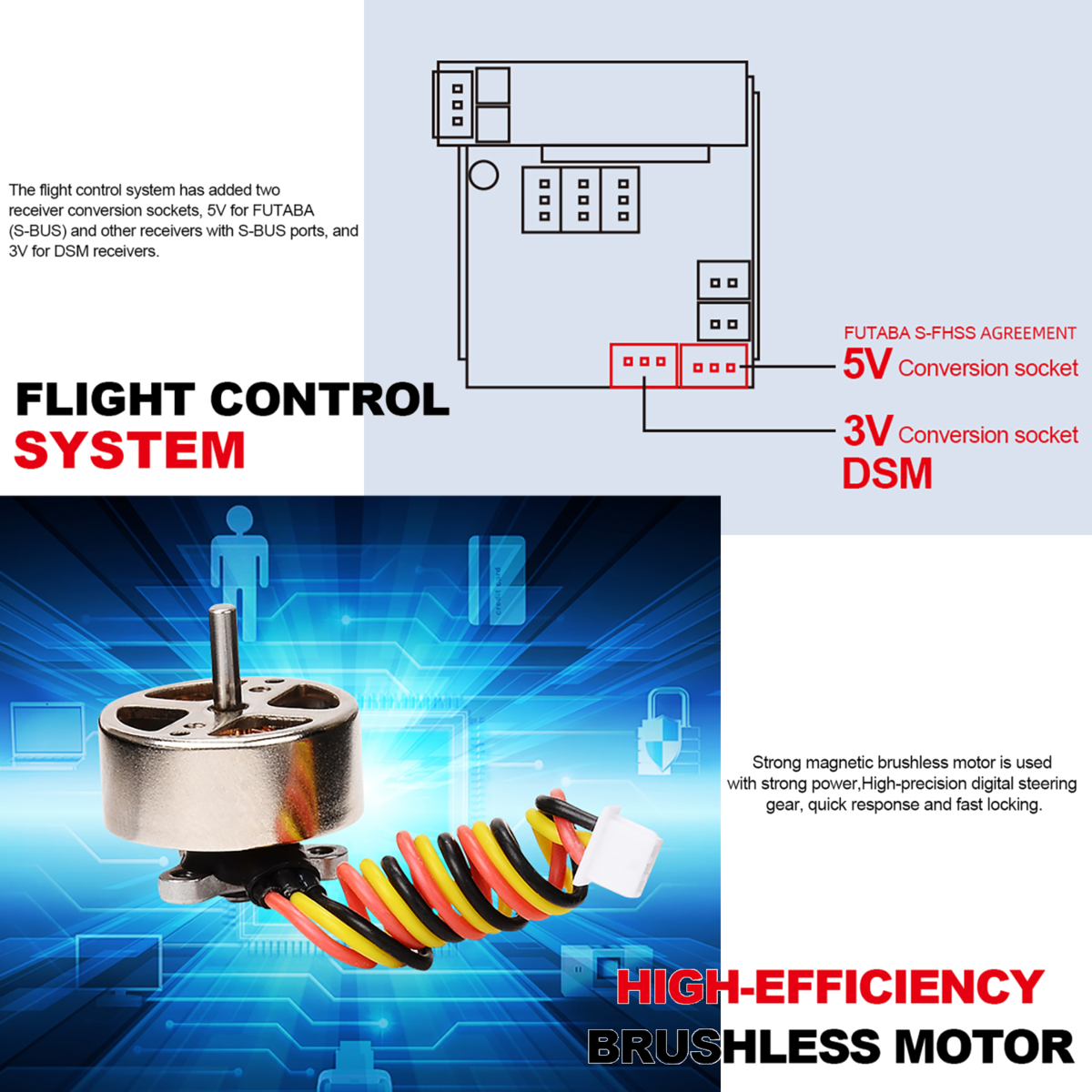 Flight Control: 3D stunt fixed-wing, 6-axis gyroscope, supporting S-BUS or DSM signal
