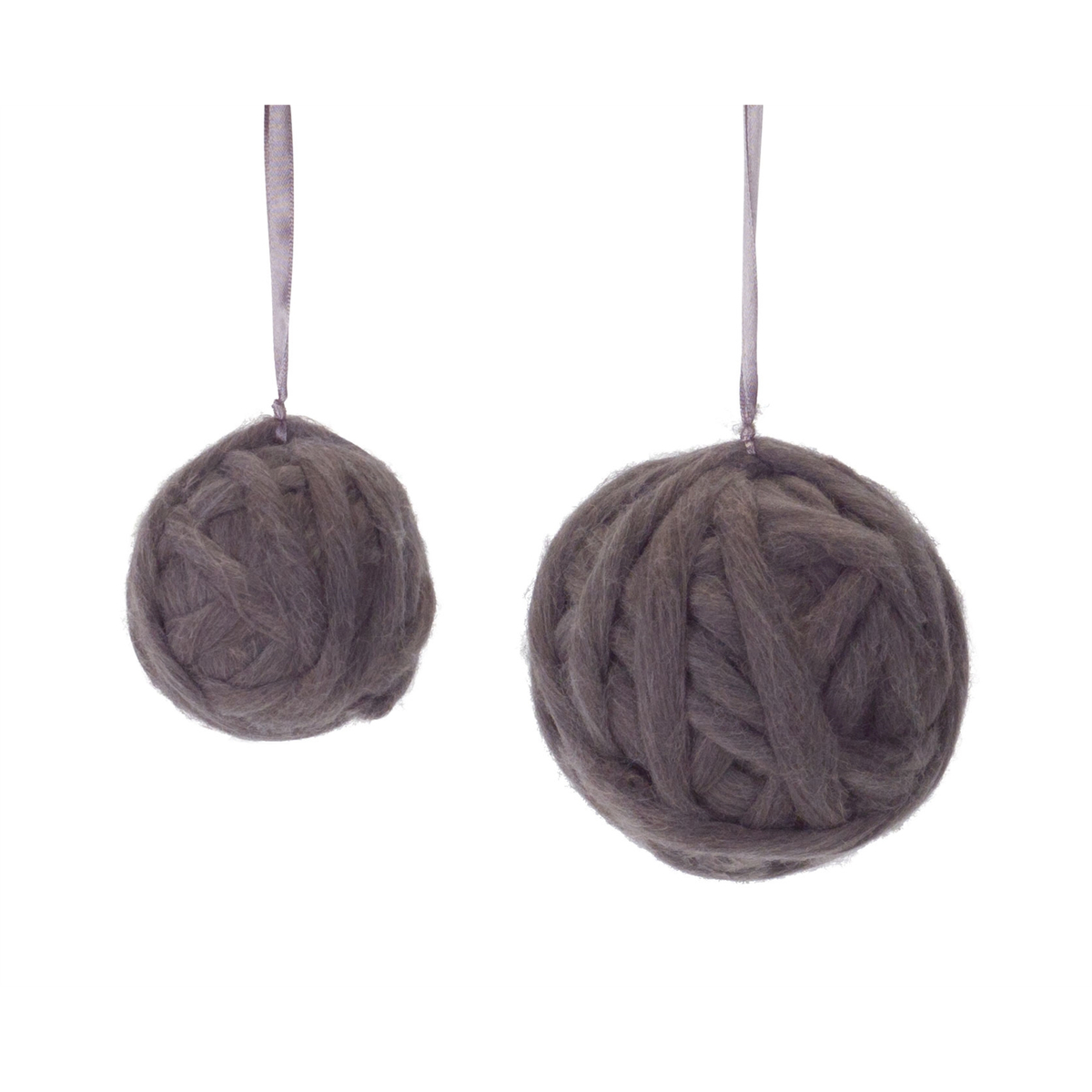Elegant Design: Each ornament is crafted from soft yarn in a sophisticated blend of grey, pewter, and plum hues, perfect for adding a stylish touch to your tree. Variety of Sizes: Includes two assorted sizes (3.25" and 4.5") for a balanced and dynamic look when displayed. Durable Long-Lasting: Made from high-quality yarn, these ornaments are designed for indoor use and are built to be enjoyed for many holiday seasons. Suitable for indoor use only