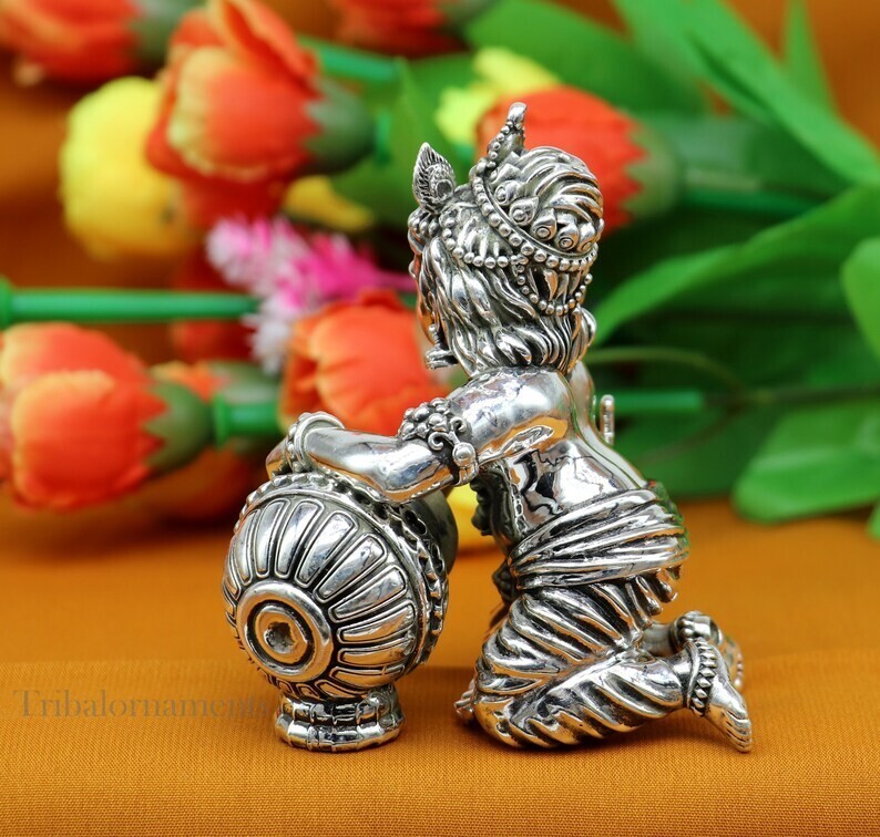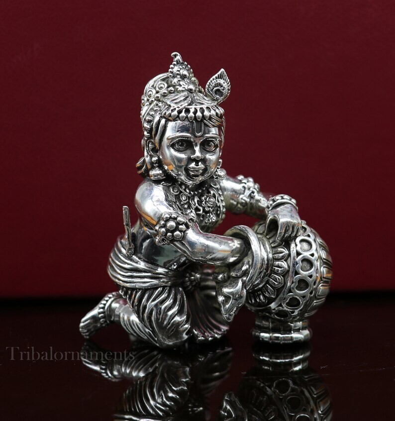 925sterling silver laddu gopal crawling Krishna statue puja article art221