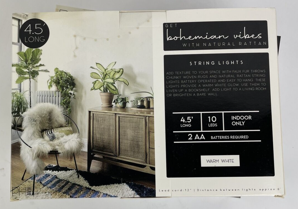 Lot of 3 x PH HOME - Natural Rattan String Lights (10) 5.5' Long 4.5' Lighted