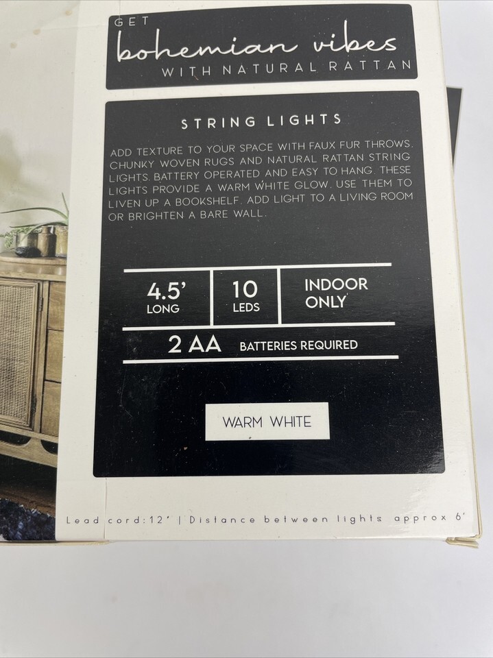 Lot of 3 x PH HOME - Natural Rattan String Lights (10) 5.5' Long