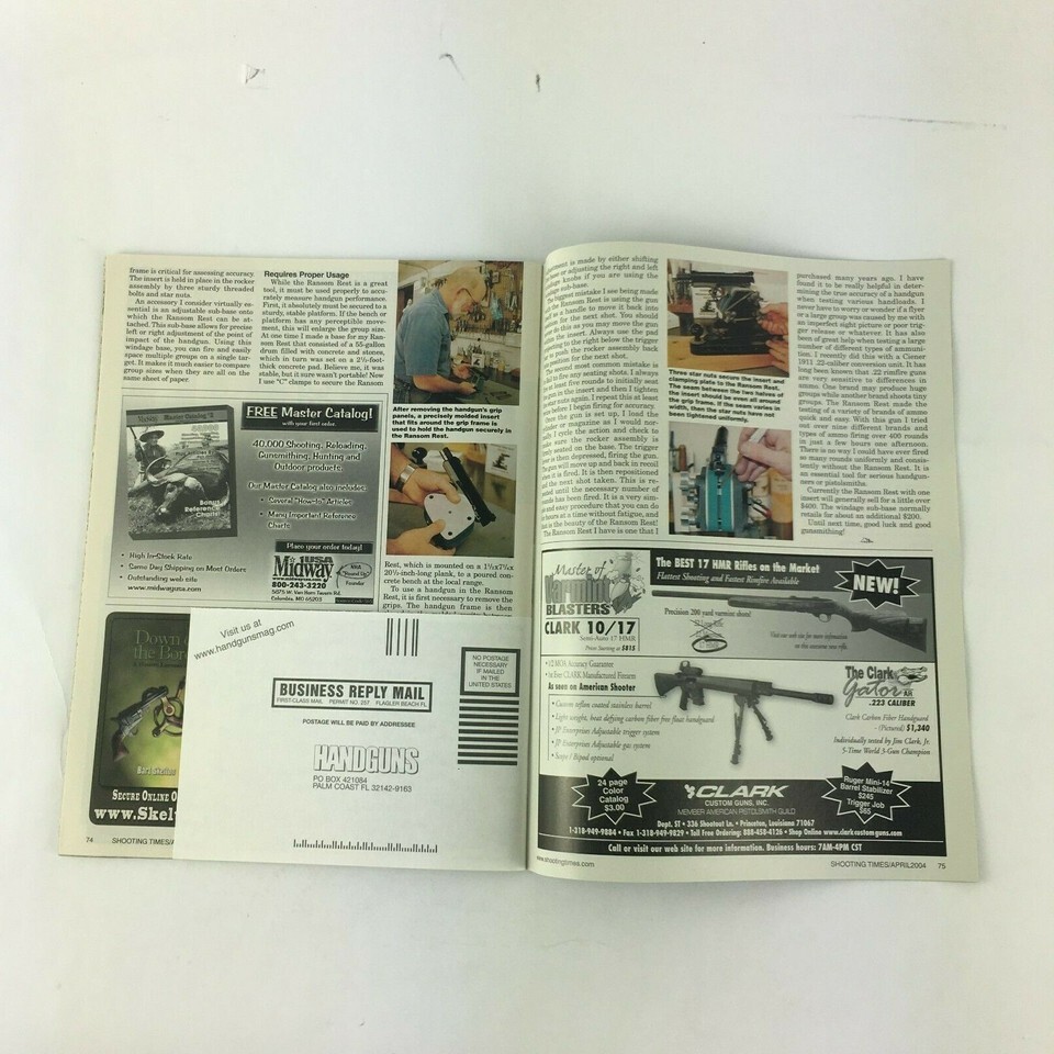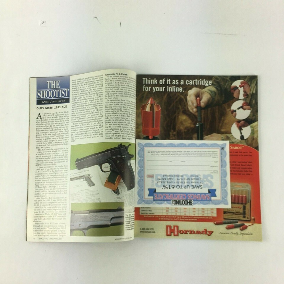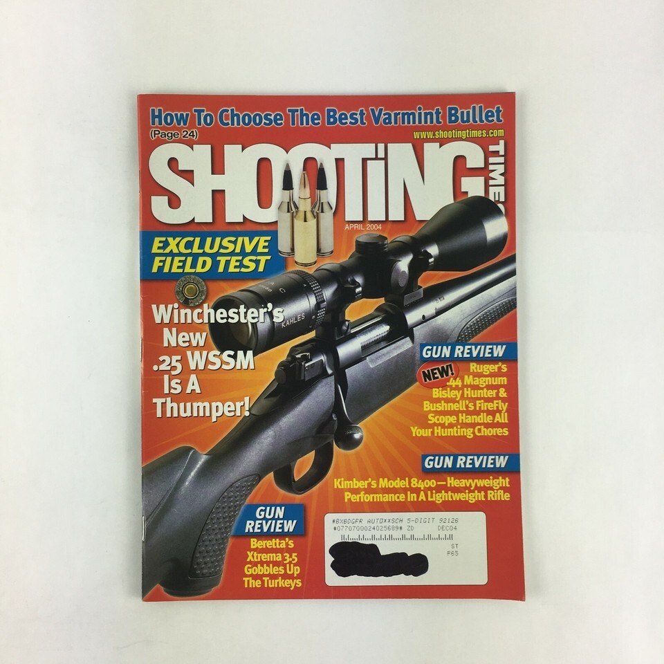 -Featuring: April 2004 Shooting Times Magazine Wincgester's New .25 WSSM Beretta's Model 8400 -Magazine is complete and in nice condition -Showing only light to moderate wear