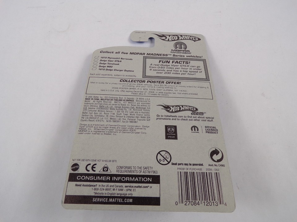 Featuring : Van / Sports Car / Hot Wheels Dodge Viper GTR - R #062 J3388 #H18