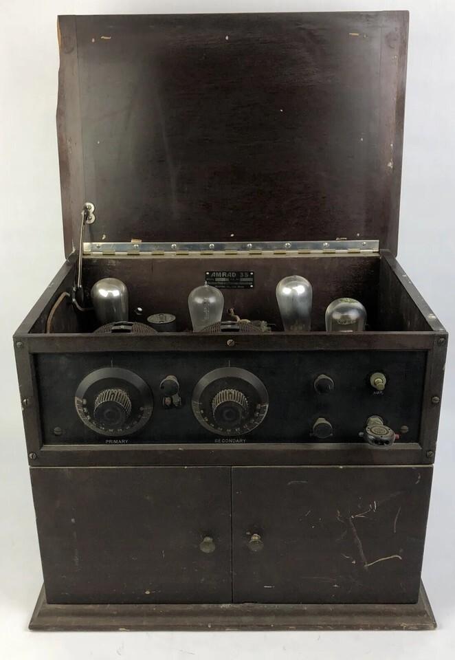 Vintage / Antique Circa 1925 Amrad 35 Inductrole 3500-3 Table Top Tube Radio Broadcast Receiver Plus Extra Tubes As Pictured Comes with everything in Images All of the knots and dials are turning freely * EXTREMELY RARE FIND