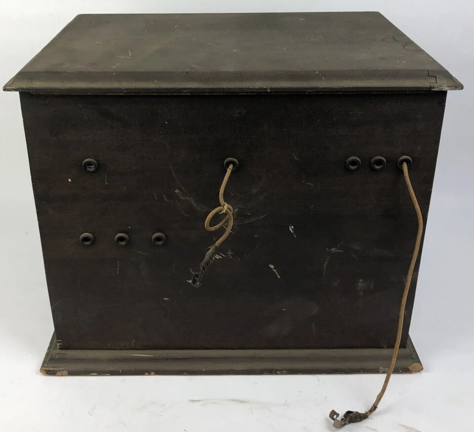 Vintage / Antique Circa 1925 Amrad 35 Inductrole 3500-3 Table Top Tube Radio Broadcast Receiver Plus Extra Tubes As Pictured Comes with everything in Images All of the knots and dials are turning freely * EXTREMELY RARE FIND ---4 ---Valves / Tubes ---UX201A UX201A UX201A UX201A ---Main principle ---TRF (Tuned-Radio-Frequency but use of regeneration unknown); 2 AF stage(s) ---Tuned circuits ---2 AM circuit(s) ---Wave bands ---Broadcast only (MW). ---Power type and voltage ---Storage and/or dry batteries ---Loudspeaker ---- This model requires external speaker(s). ---Material ---Wooden case ---from radiomuseum ---Model: Amrad 35 Inductrole 3500-3 - Amrad Corporation; Medford ---Shape ---Tablemodel, Box - most often with Lid (NOT slant panel). ---Dimensions (WHD) ---17 x 14 x 12 inch / 432 x 356 x 305 mm ---Notes ---The Amrad 35 Inductrole model 3500-3 has two dials (primary tuning control knobs).