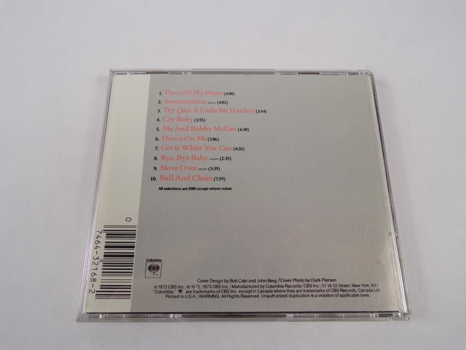 -Featuring:Janis Joplin's Greatest Hits Swmmnertime Ball And Chain Move Over Gry Baby CD#12 - Please review images for details CD is in excellent econdition unless otherwise stated - Piece Of My Heart - Summertime - Try - Cry Baby - Me And Bobby McGee - Down On Me - Get It You Can - Bye,Bye Baby - Move Over- Ball And Chain