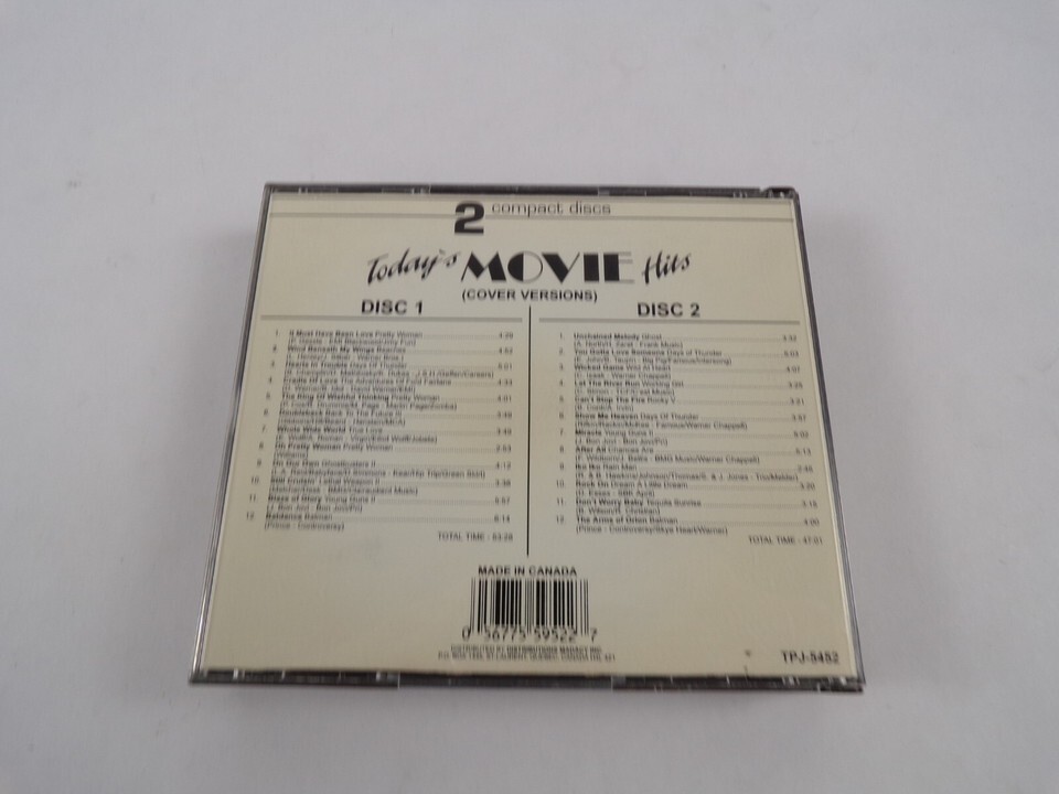 Featuring:Today's Movie Hits I Must Have Been Love Brelly Woman Wind beneath Hearts In CD#2 - Please review images for details CD is in excellent econdition unless -otherwise stated - Days Of Thunder - True Love - Back To THe Future 3 - Young Guns 2 - Lethal Weapon 2 - Rocky V - Ghost - Rain Man - Beaches - Pretty Woman - Batman