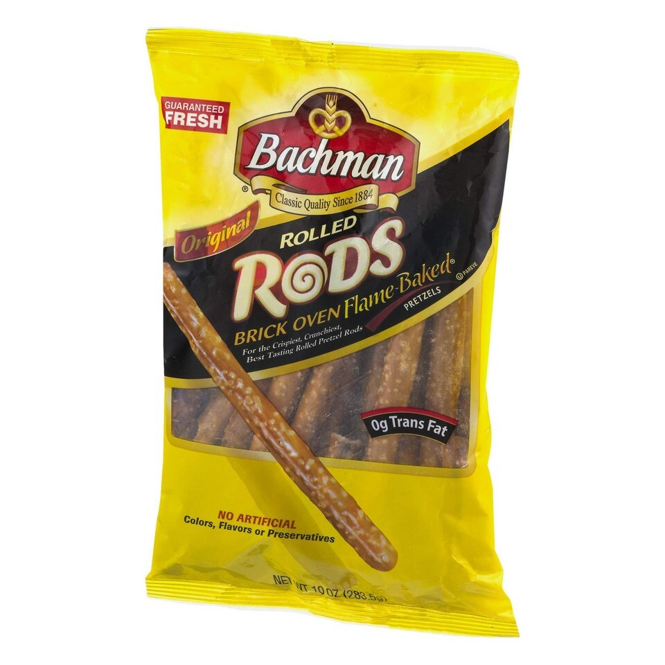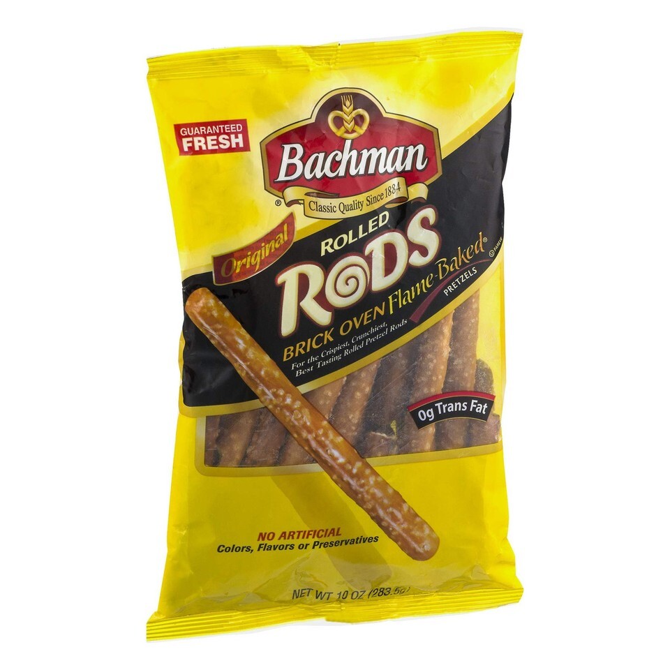 Contains no artificial colors, flavors or preservatives. Bachman Original Rolled Rods Brick Oven Flame Baked Pretzels.Guaranteed fresh.Classic quality since 1884.For the crispiest, crunchiest, best tasting rolled pretzel rods.0g trans fat.No artificial colors, flavors or preservatives.