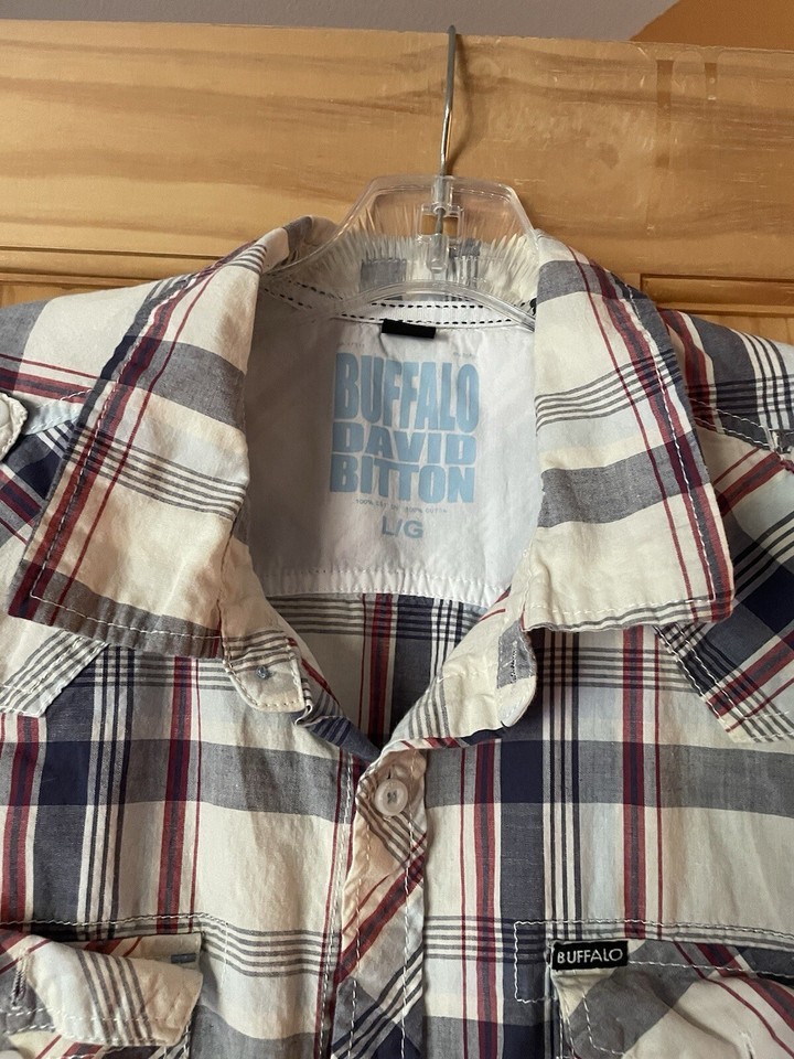 Introducing a stylish and versatile button-up shirt from Buffalo David Button. This shirt is perfect for men who want to add a touch of sophistication to their wardrobe. The short sleeves make it perfect for warmer weather, while the multicolor design adds a pop of color to any outfit. The shirt is available in size L and is suitable for regular size types. The brand, Buffalo, is known for its high-quality clothing and attention to detail. This shirt is no exception, with its unique character and subtle design. It is ideal for casual occasions and can be paired with jeans or chinos for a complete look.