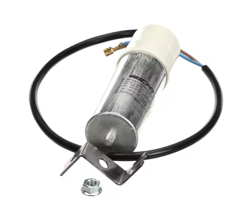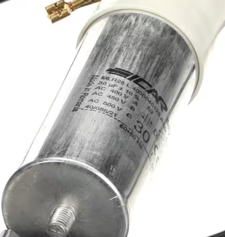 The Electrolux Professional MLR25, L4030045128 Capacitor is a genuine compressor run capacitor designed to ensure stable and efficient operation of refrigeration compressors. With a 30 microfarad (ยตF) capacity and rated for 400 volts, this component provides consistent electrical phase shifting for optimal compressor performance, energy efficiency, and motor protection.