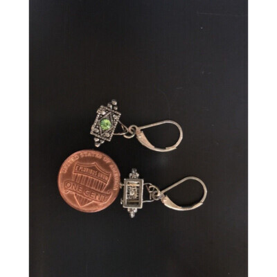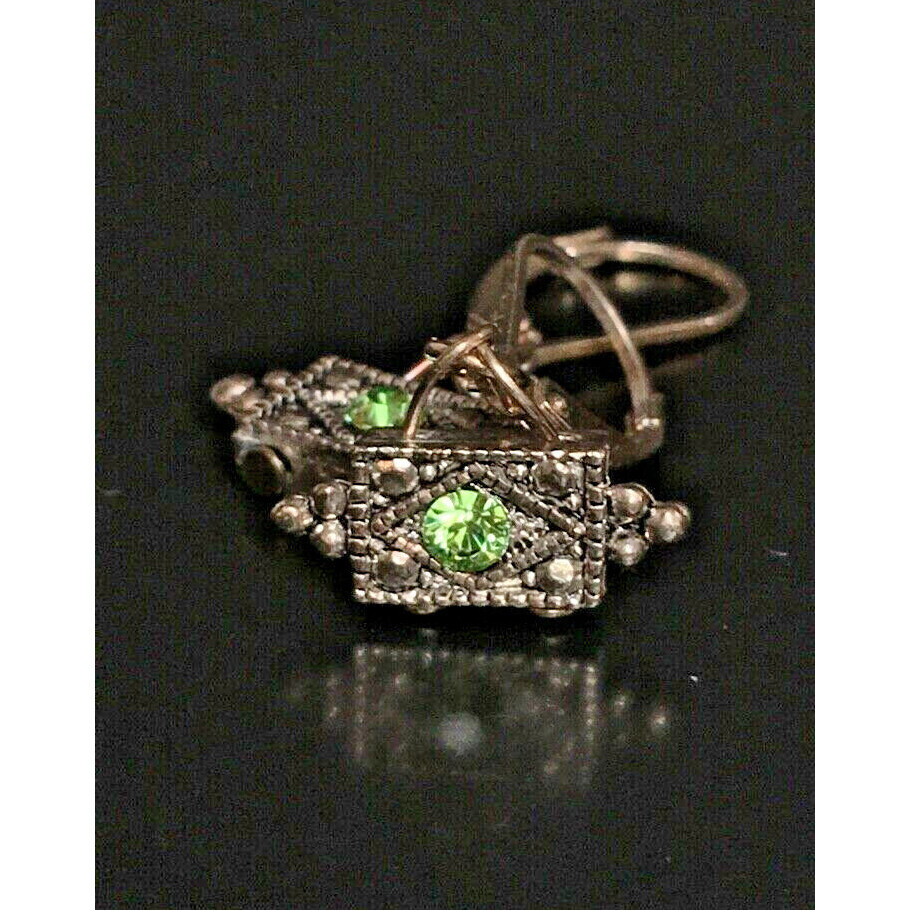 925 Sterling Silver & Green CZ Dangle Earrings Sky