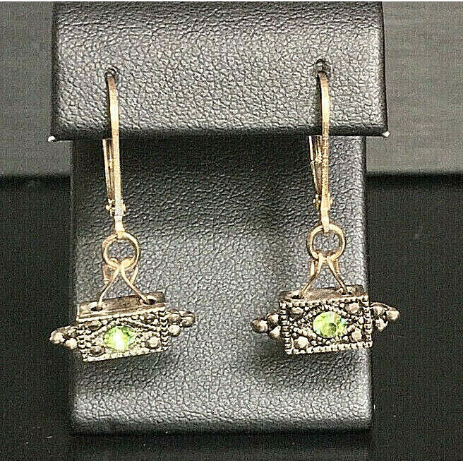 925 STERLING SILVER GREEN CZ DANGLE EARRINGS SKY