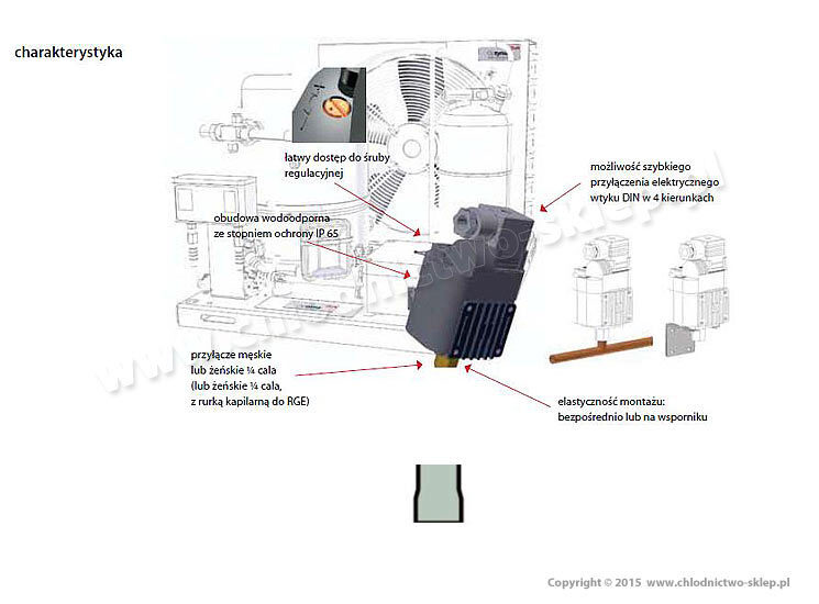 Mo?liwe jest pod??czenie sygna?u ci?nieniowego dla regulatora przed oraz za skraplaczem.