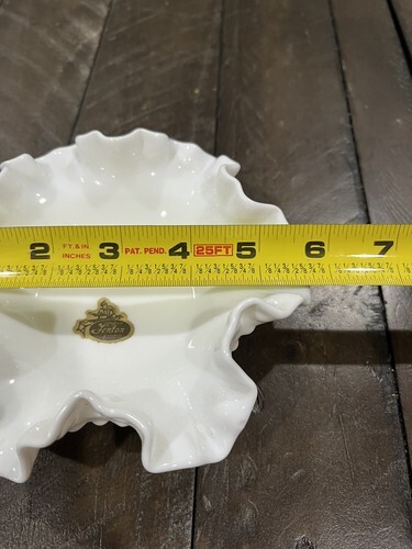 The bowl is from the 1970s and is an original vintage piece. It comes with a sticker and is in great condition. It's perfect for decoration or for use as a trinket dish. Handmade with care instructions of hand wash only, this bowl is a must-have for any Fenton or milk glass collector.
