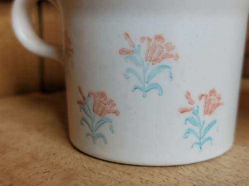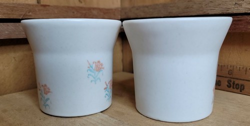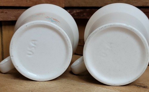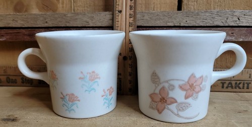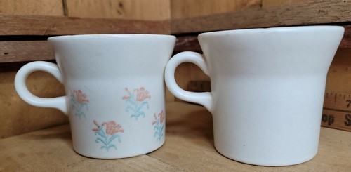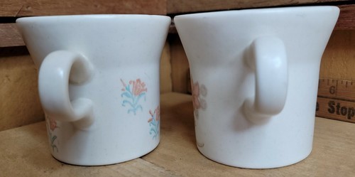 Lot of 2 Vintage Stoneware Coffee Tea Mugs Cups White Flowers Made in USA 3.25".