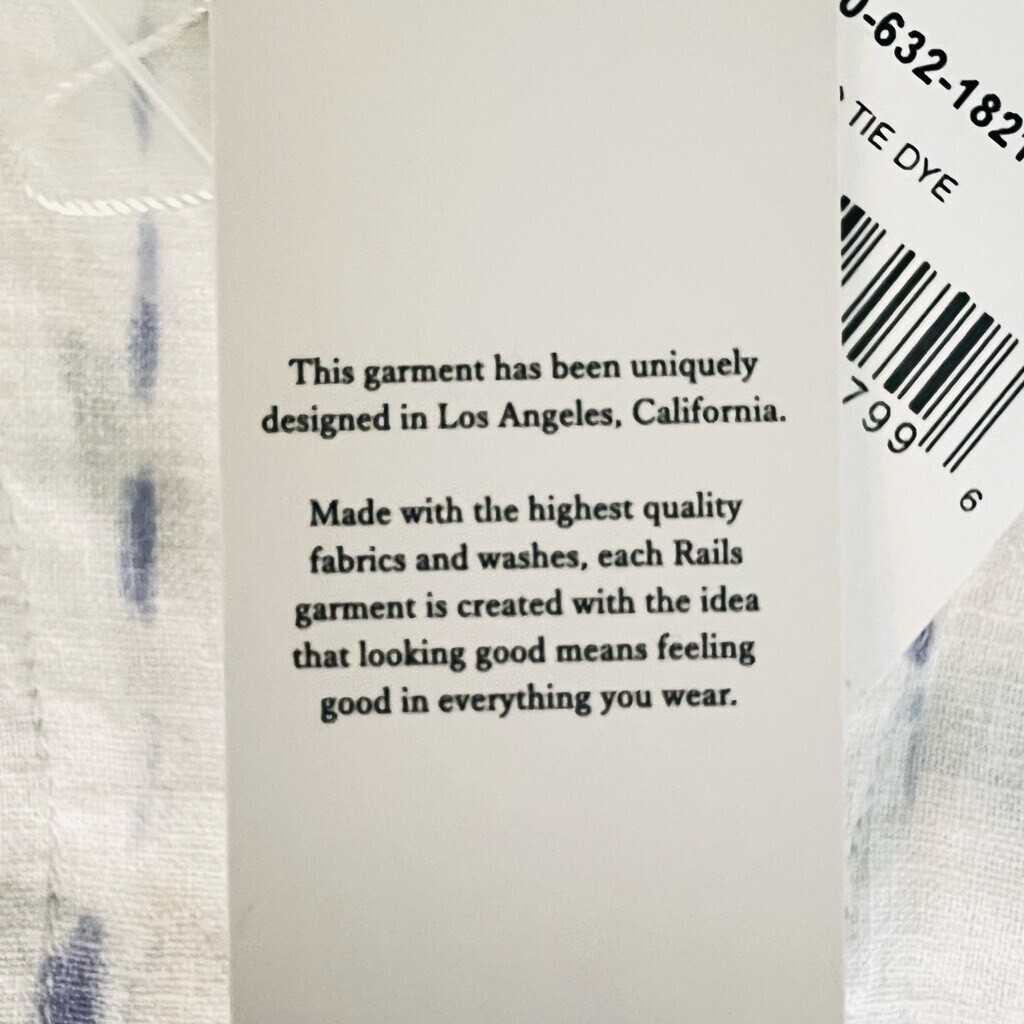 RAILS Thea Tie Waist Linen Blouse Top, Tie-dyed, Blue/White, Small, NWT