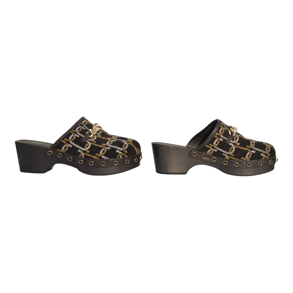 Camilla Arabella Leopard chain black embellisehd in gold & silver clogs sz.40