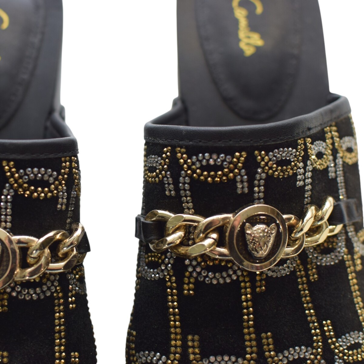 Camilla Arabella Leopard chain black embellisehd in gold silver clogs sz.40
