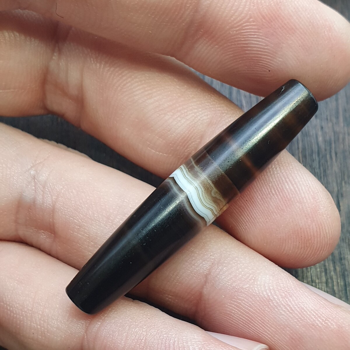 Antica vecchia agata yemenita naturale raro modello agata a fascia perline...