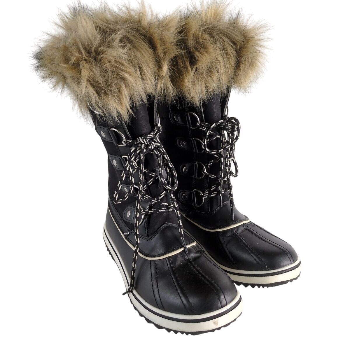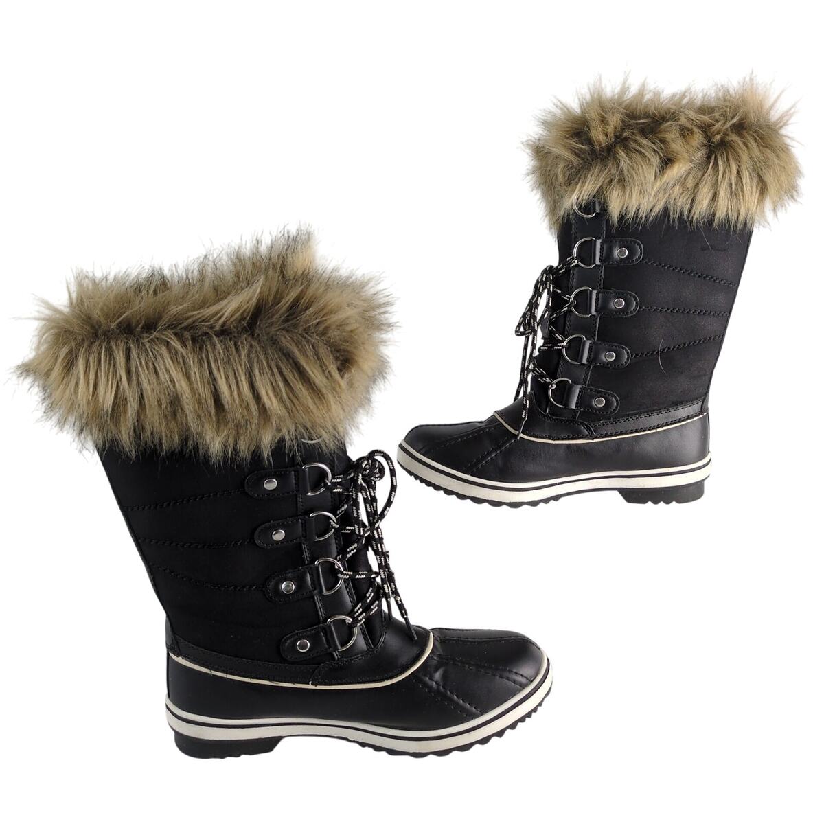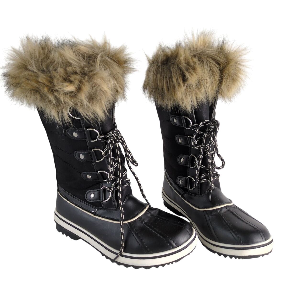 Globalwin Women's 8 Faux Fur Trimmed Insulated Quilted Winter Snow Boots Black