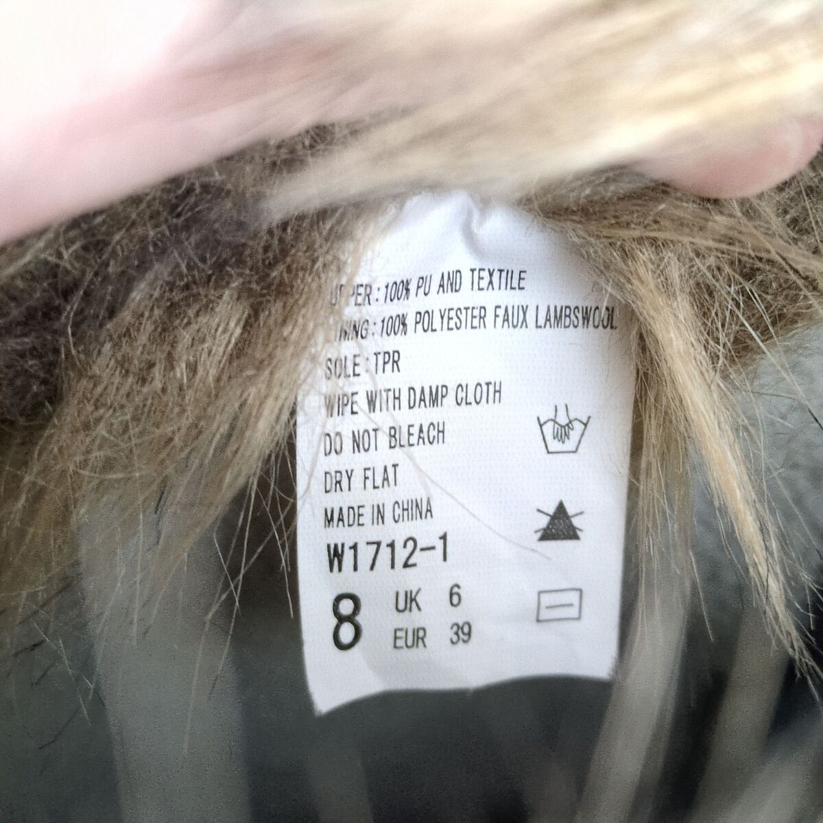 Features: Quilted faux leather sides, mid-calf 11" height from heel, faux fur trim, lace-up front, TPR sole, flannel lining, 5/8" heel