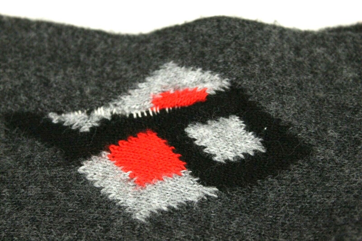 VTG Men's Acrylic Rayon Blend Dress Socks Gray W Pattern 1940-50s NOS VTG+ 1, have black, red and white intaglio designs.