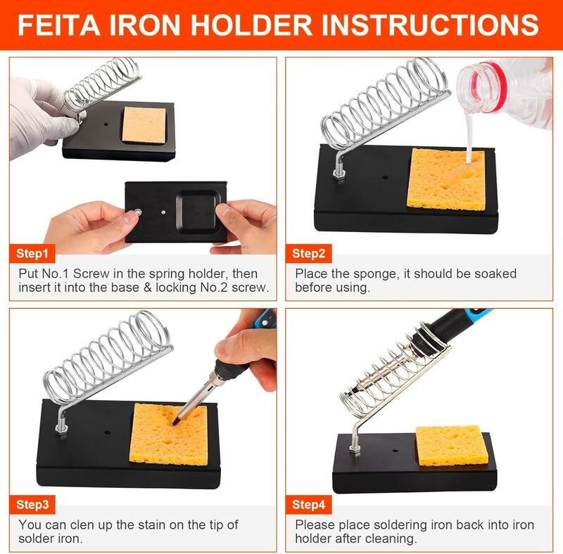 [Soldering Iron Support Station]: Standard dual spring soldering iron holder with sponge is a very useful tool when the soldering iron work.It has a secure base and it is more safer than any other thin soldering stand.The maximum extent to avoid the user was burned and damaged.