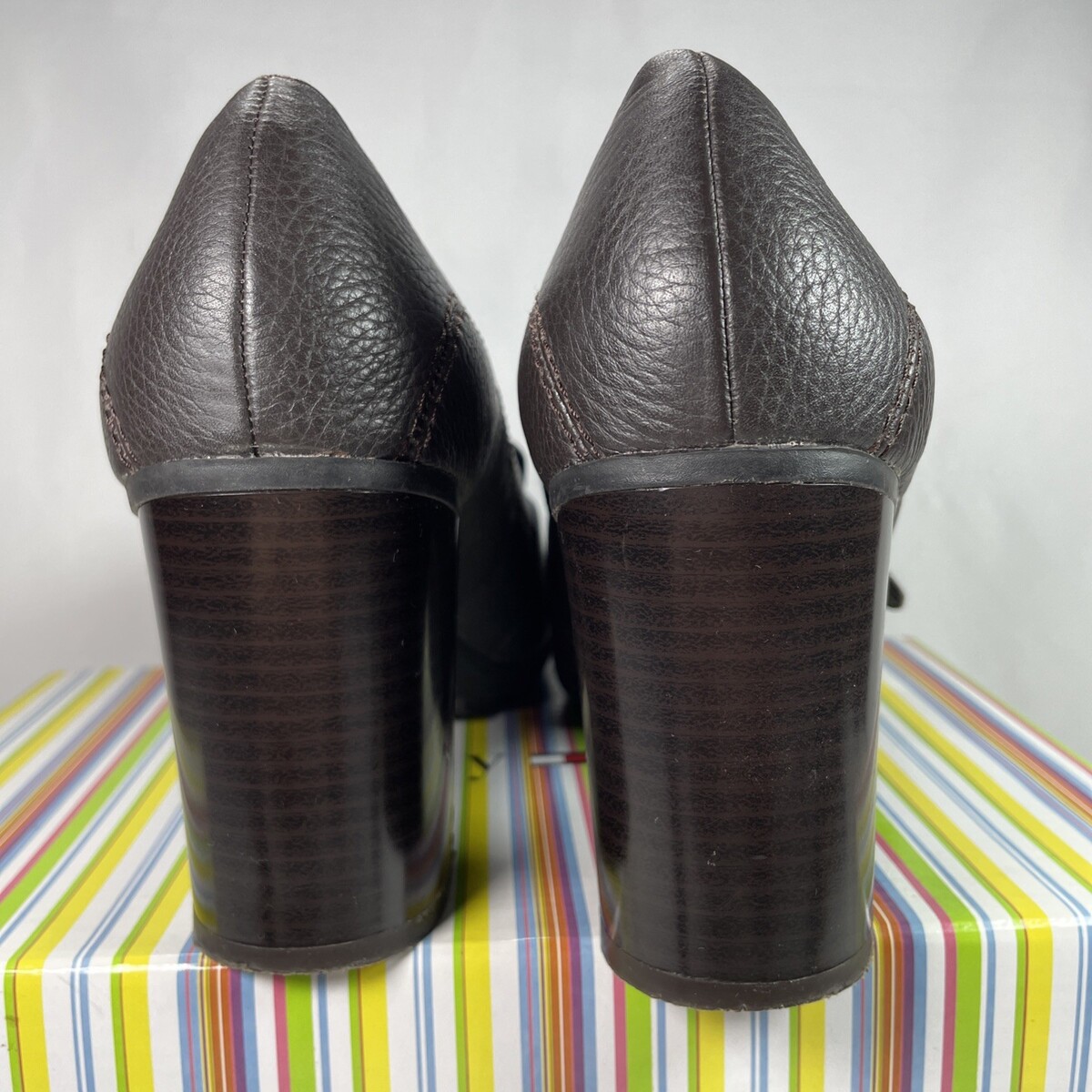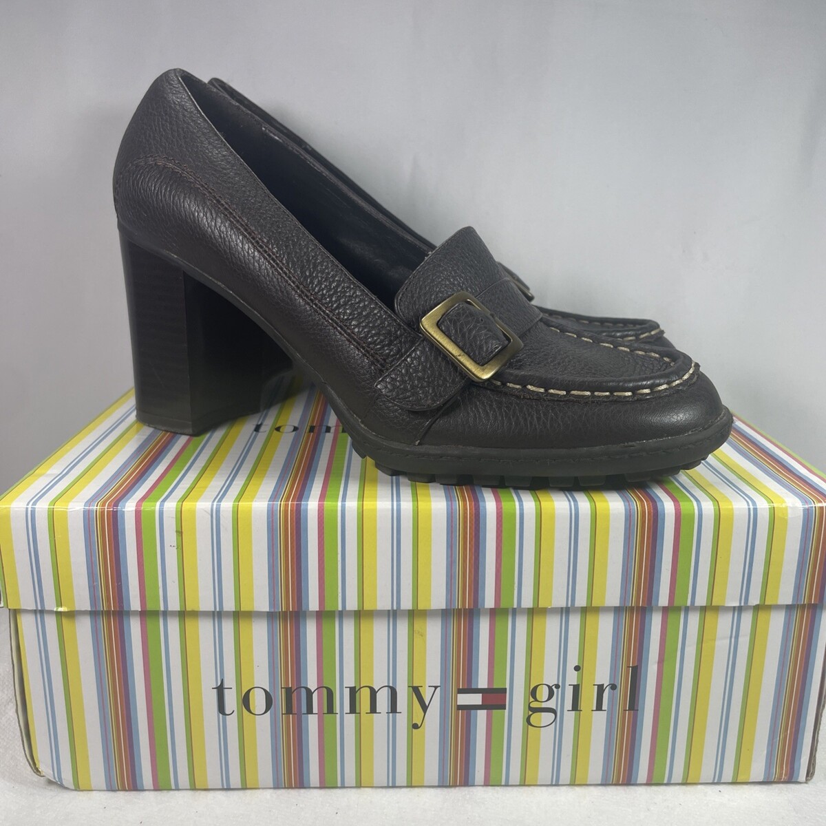 Tommy Girl Chunky Heel Leather Upper Pumps - Brown - Size 8M