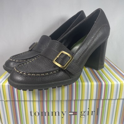 The Tommy Girl Chunky Heel Leather Upper Pumps in brown are a stylish and classic pair of women's shoes. Featuring a high block heel with a chunky design, these pumps are made from luxurious leather material. The Tommy Girl brand adds a touch of sophistication to these versatile heels, perfect for various occasions. The size 8M ensures a comfortable fit for a confident and chic look.