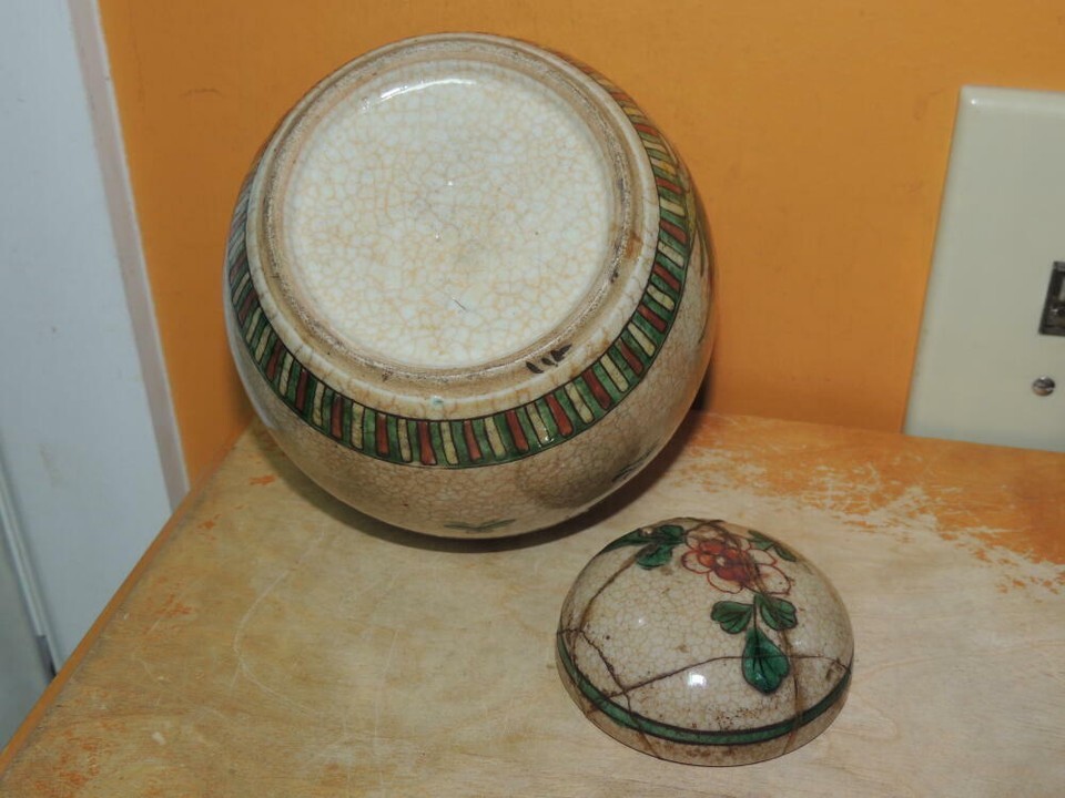 ONE JAR. THE LID IS INCLUDED BUT IS BADLY DAMAGED AND POORLY REPAIRED I AM NOT AN EXPERT, BUT I BELIEVE THIS IS 100 YEARS OLD OR OLDER, HAVING MANY OF THE FEATURES OF AGING POTTERY. YOU ARE THE EXPERT, IF YOU HAVE DOUBTS, PLEASE DO NOT PURCHASE. PLEASE LOOK AT THE PICTURES CAREFULLY.