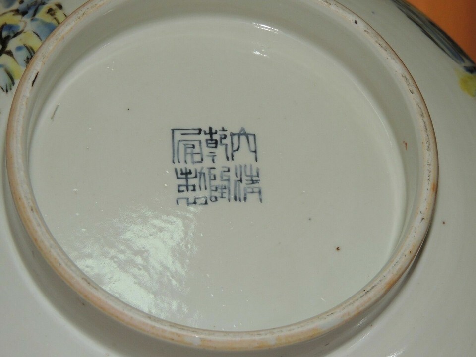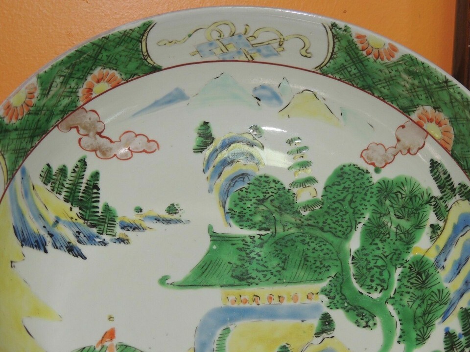 Chinese 9.5" Famille Verte Bowl Antique 19th/ 20th late Qing mark early Republic