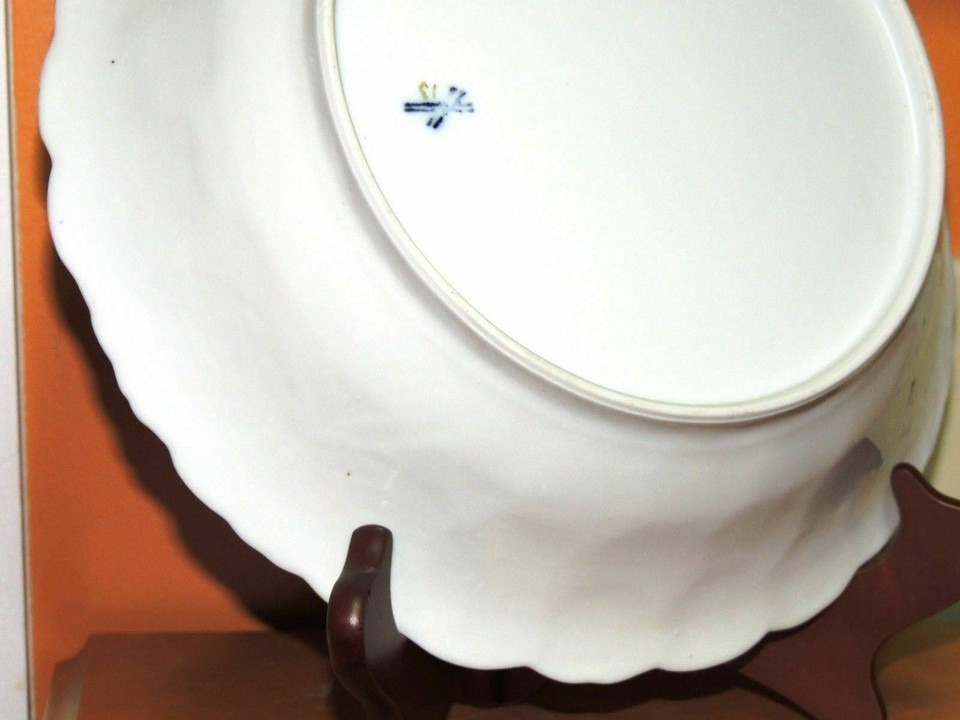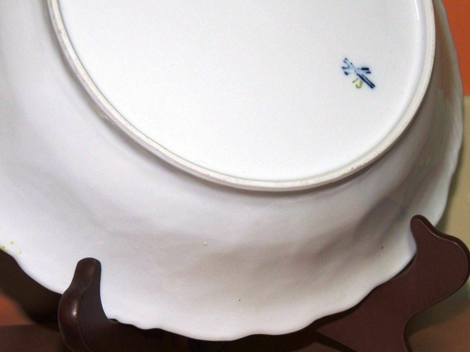 ONE ANTIQUE BOWL MARKED WITH TWO SETS OF DOUBLE LINES, CROSSED (IN BLUE) AND THE NUMBER 13 (IN GREEN). IN MY RESEARCH I FOUND THE EXACT SAME MARK, BUT INSTEAD OF THE NUMBER 13 IN GREEN, IT HAD THE WORD "MUSTERSCHUTZ", ALSO IN GREEN. I AM NOT AN EXPERT, PLEASE LOOK AT THE PICTURES CAREFULLY.