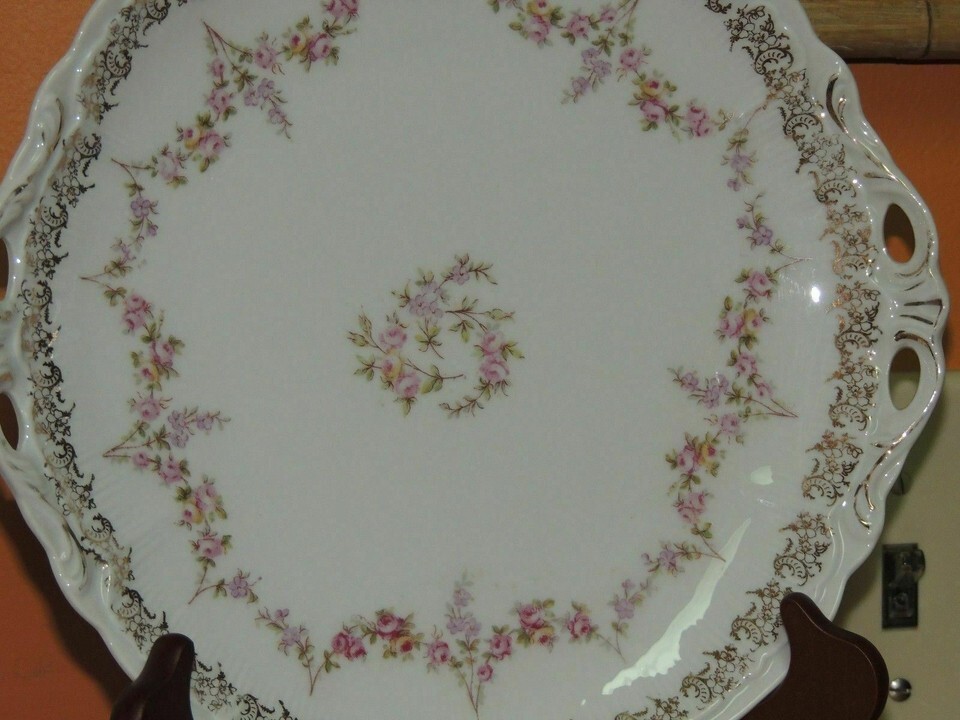 Antique C.T Germany 9.25" Handled Platter Charger Plate Roses embellished w/gold