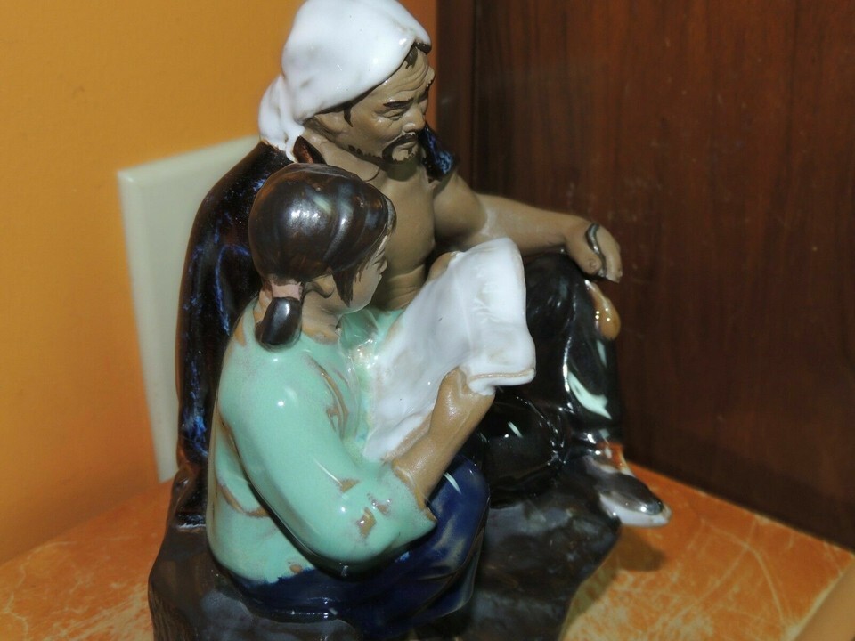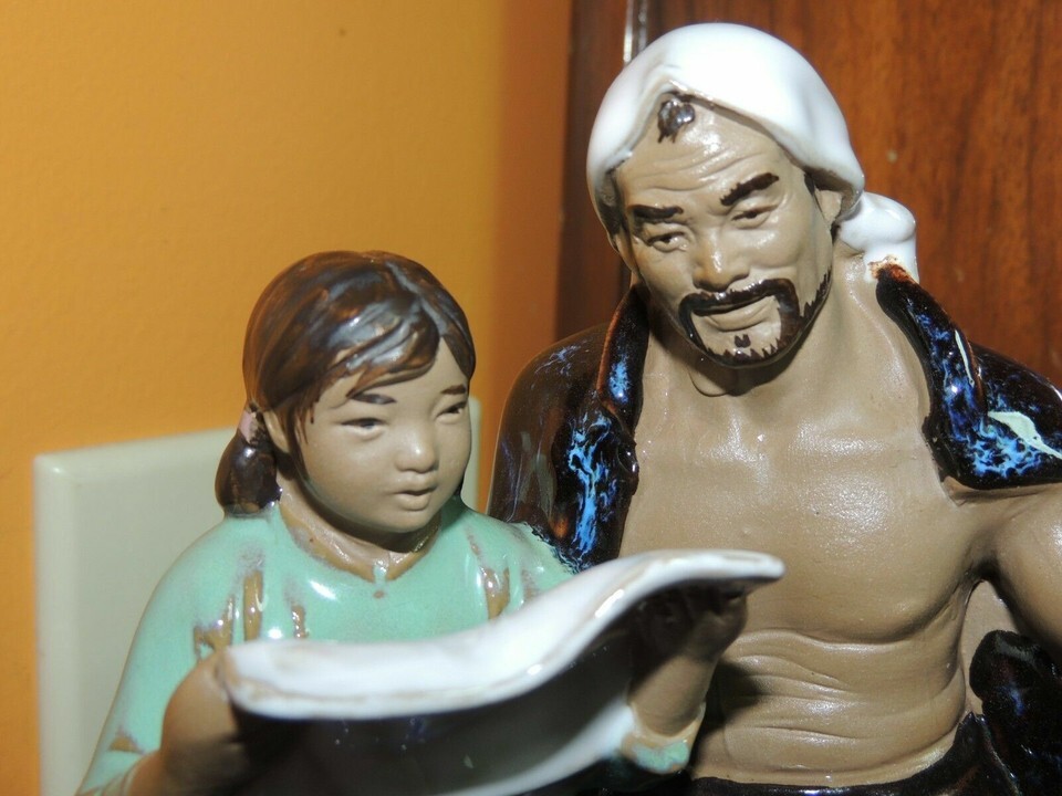 Chinese Mud Man/ Men Seated Father Daughter and similar items