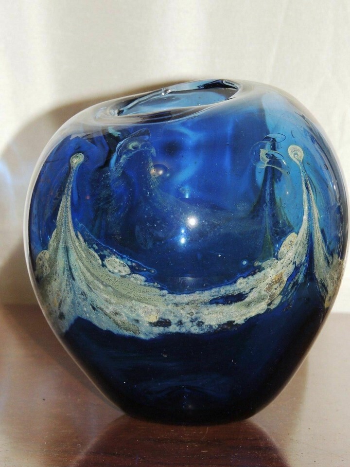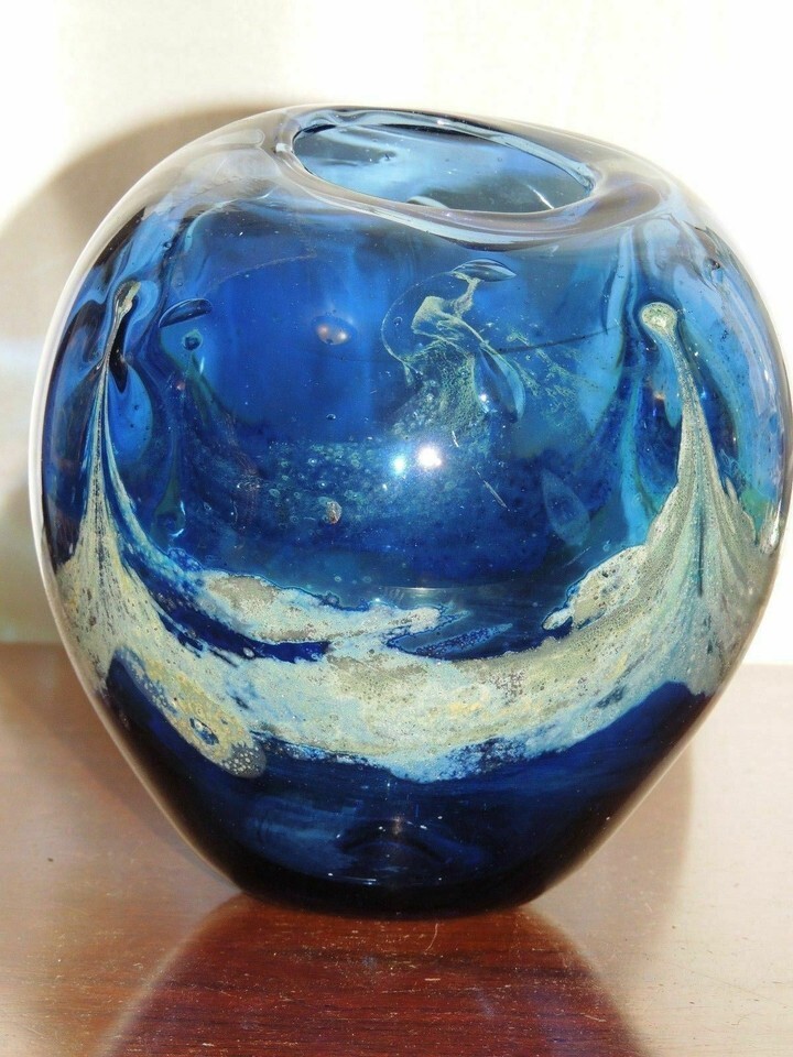 Art Glass Vase 5.5" x 5.5" Blue & Gold Hand and 31 similar items